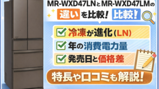 MR-WXD47LNとMR-WXD47LMの違いを徹底比較。冷凍機能(V冷凍+の進化)、省エネ、サイズ・容量、選び方を整理し、MR-WXD47LMの口コミ傾向も紹介。