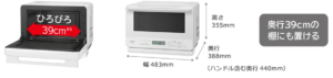 庫内幅39cmのワイド設計で、大きめのお皿やピザも扱いやすいのが売り。