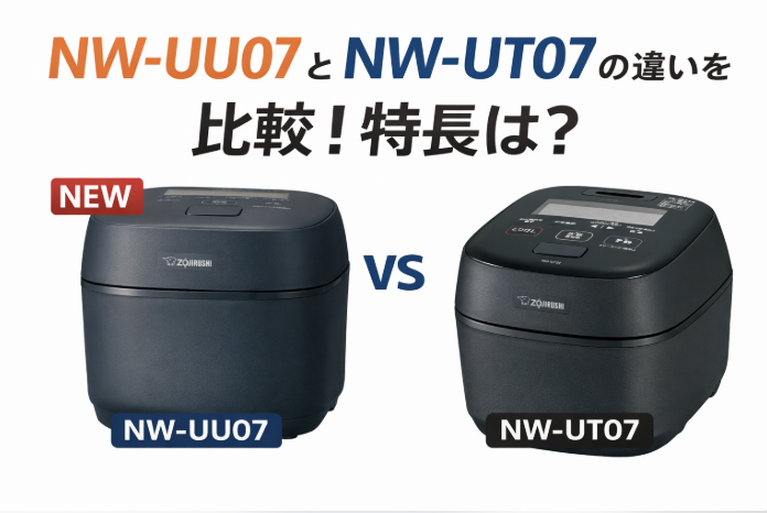 NW-UU07とNW-UT07は、どちらも4合サイズの「炎舞炊き」で、サイズ感と“ごはんのおいしさ”を両立した路線は共通です。