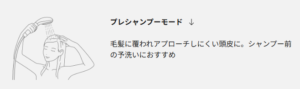 公式の説明でも、ヘアケアで大切な「予洗い」ステップに着目したモードとして紹介されています。