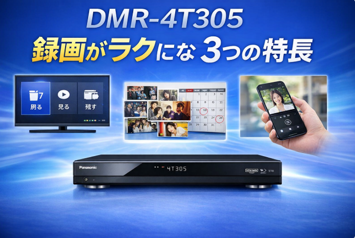 今回は、DMR-4T305の特長を“スペックの羅列”ではなく、生活の中で何がどう便利になるのかを紹介します。