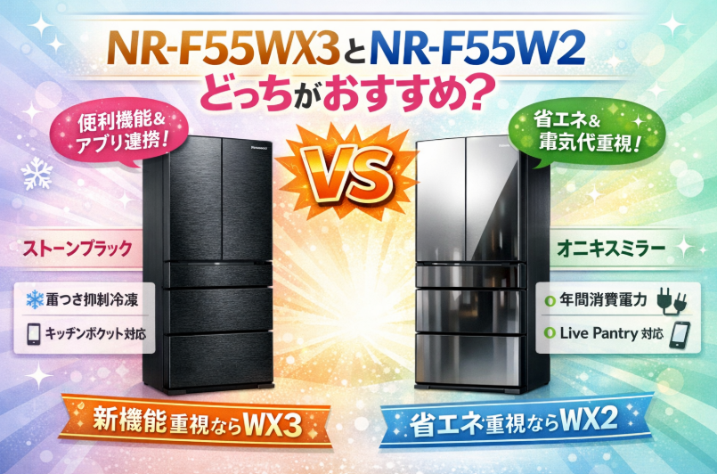 NR-F55WX3とNR-F55WX2の違いを比較しながら、どっちがおすすめなのかをわかりやすく紹介します。