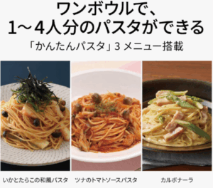 1〜4人分まで対応しており、鍋やコンロを使わずにパスタがゆで上がります。