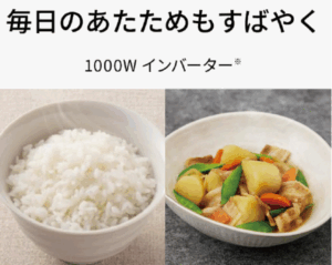 • 1000Wインバーターによるスピーディー加熱