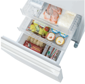 冷凍室 3段ケースの大容量冷凍室 スライドケース付き冷凍室(容量は小さめ)