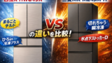 どちらもフレンチドア(観音開き)+まんなか冷凍ですが、細かい使い勝手には違いがあります。
