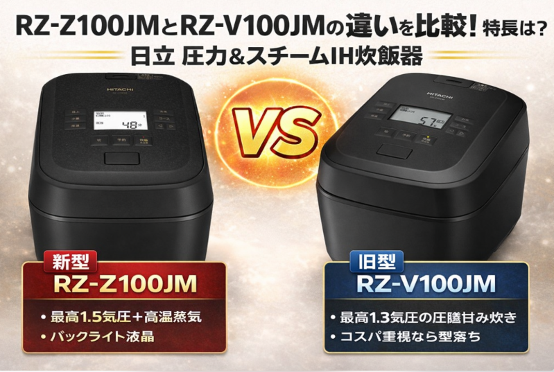 今回は、RZ-Z100JMとRZ-V100JMの違いを“スペックの数字”だけで終わらせず、どんな家庭・どんなご飯の好みならどっちが正解かまで落とし込んで比較します。