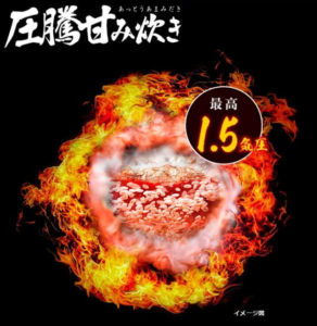 RZ-V100JMも「圧騰甘み炊き」で、最高1.3気圧まで圧力を上げて甘みと粒立ちを狙う設計です。