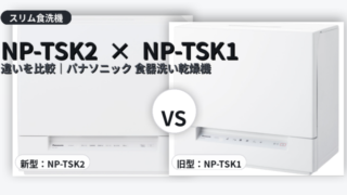 パナソニック食洗機NP-TSK2とNP-TSK1の違いを徹底比較。スピーディ(約26分)や80℃すすぎ、かご改良・ボトルホルダーなど新型の進化点と、低温ソフト搭載の旧型が向く人を解説。設置寸法の注意点もまとめました。
