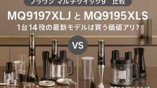 キッチン家電 MQ9197XLJとMQ9195XLSの違いを比較|1台14役になった最新モデルは買う価値アリ?【ブラウン マルチクイック9】 ブラウン マルチクイック9「MQ9197XLJ」と「MQ9195XLS」の違いを徹底比較。1台14役の最新モデルは型落ちより本当にお得か、付属品・使い勝手・価格から選び方を解説します。 2025.12.15 キッチン家電ハンドブレンダー